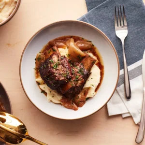 Slow cooker ranch beef short ribs are coated in ranch seasoning and slow cooked with onions, red wine, and mustard until irresistibly tender.